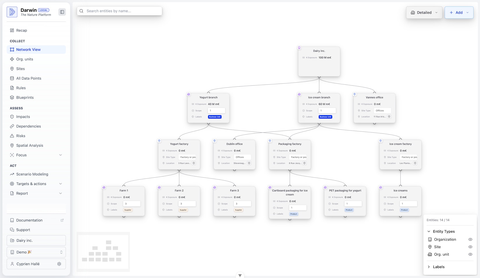 Entities represent your organizational structure in Darwin. They form a hierarchy that allows you to allocate environmental data and track impacts across your organization.